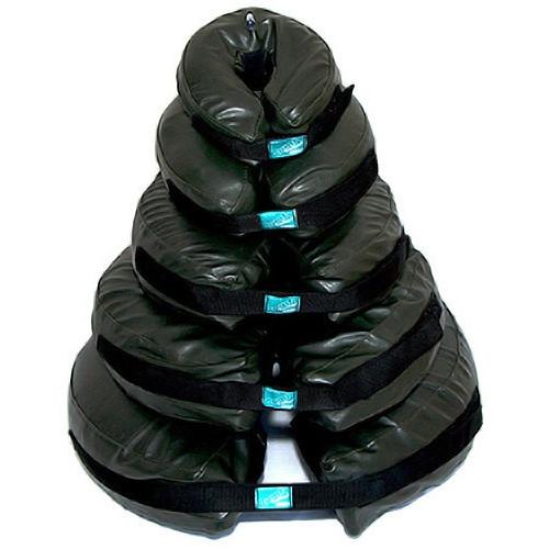 Each comfy collar has an outer layer and a separate inflatable inner tube, with a velcro fastening strap on the outside edge and fabric hoops to secure against your pet’s collar on the inside edge.