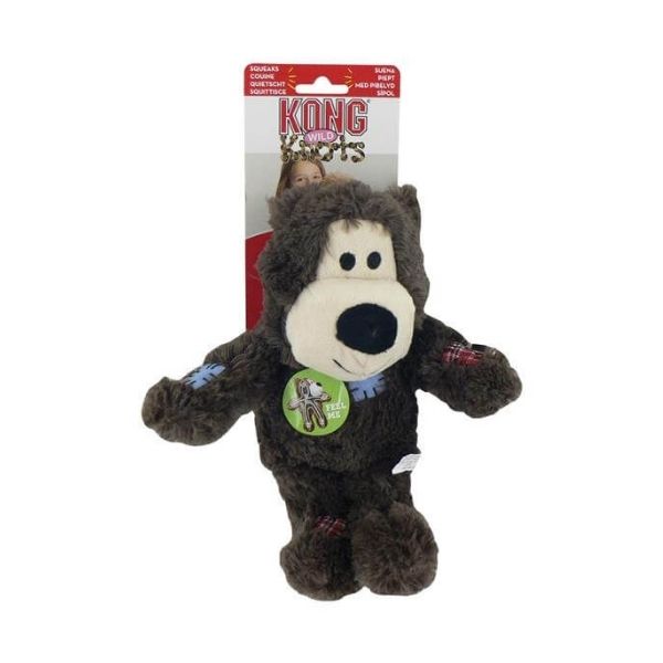 KONG Wild Knots are soft and cuddly on the outside while durable and strong on the inside. Wild Knots bears are sure to be a hit with dogs and their pet parents. Dogs love the knotted skeleton, and the reinforced plush body provides extra durability. KONG Wild Knots have less stuffing for less mess and they squeak to entice play.