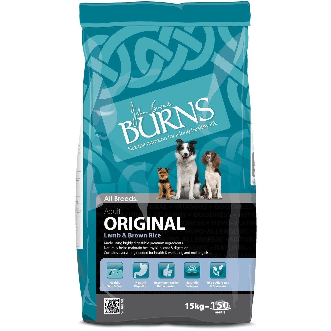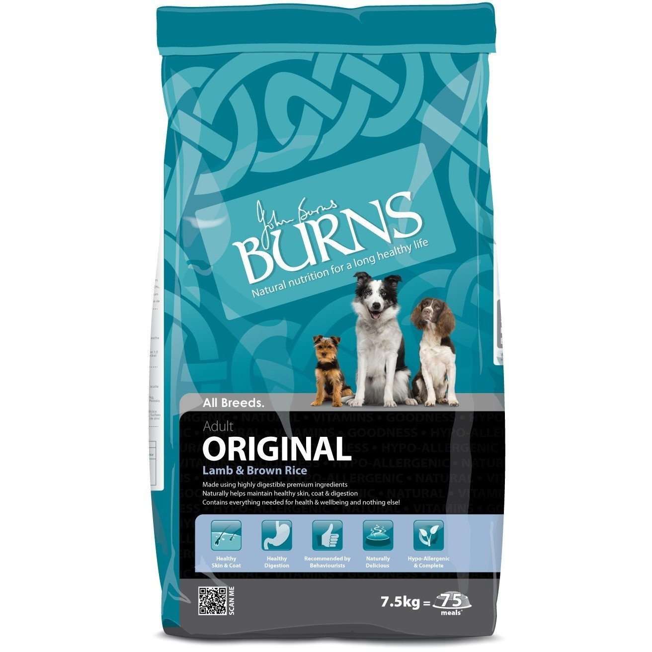 Burns Original is hypo-allergenic, so it is suitable for sensitive dogs. It is formulated without ingredients such as wheat, soya, dairy, artificial colourings and artificial preservatives which are known to cause symptoms of food intolerance including itchy skin, digestive upset, excessive moulting, full anal glands and waxy ears.