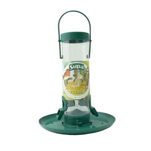 This versatile feeder is designed to cover all permutations associated with dispensing this popular food. It can be hung in the usual manner from a tree, washing line or hook. Also due to the design of the base, the feeder can be placed on a length of dowel driven into the ground. The scattering of mealworms on the large base tray acts as an initial attractant and subsequently as a supplementary feeding station whilst also catering for those birds that prefer a flat feeding surface.