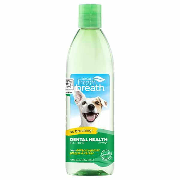 Cleaning your pet’s teeth is about more than just getting their pearly whites to sparkle — it’s an important step in their overall health and wellness. With TropiClean Fresh Breath Dental Health Solution, dogs can benefit from daily plaque and tartar defence. Easy-to-use Dental Health Solution gives your dog clean teeth and fresh breath-no brushing required!